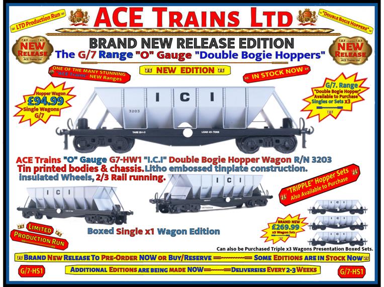 Ace Trains, O Gauge, G7-HW1, "I.C.I" Eight Wheeled, Double Bogie Hopper Wagon,