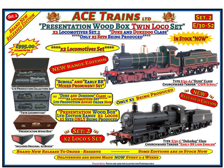 E/30-S2 Ace Trains, O Gauge, Set 2. Twin, x2 Locomotive "Wooden Box Presentation Set"